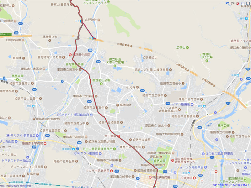 姫路駅前からは、Googleの道案内に従って書写山を目指します。