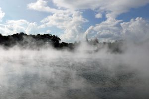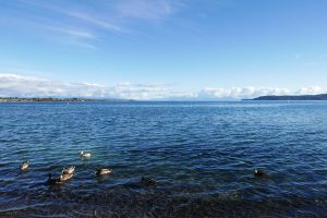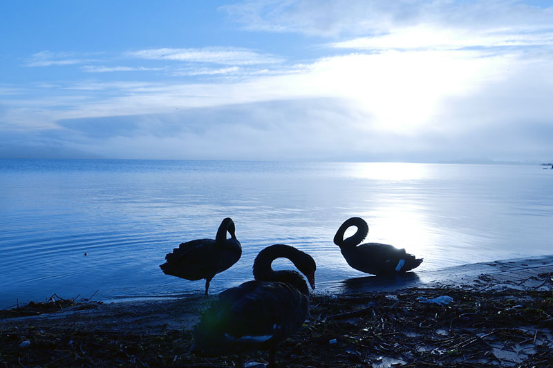 前日の大雨の影響で、湖は結構あれていて、湖岸も汚れていました。