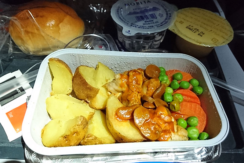 離陸してしばらくすると配られる、機内食です。