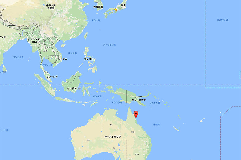 ケアンズはこのあたり、日本から直行便で7時間半ぐらいです。