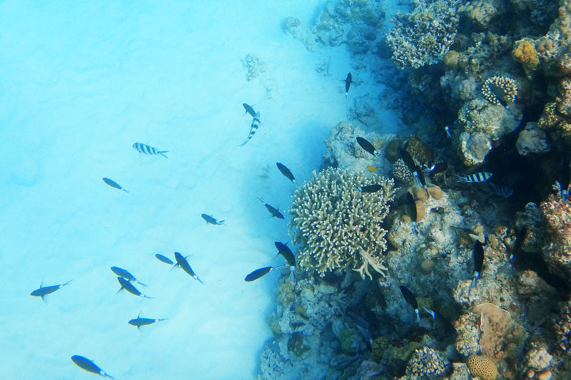 珊瑚がたくさんあるところと、砂地のところがあります。