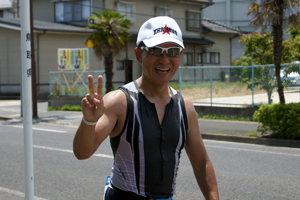 7キロ地点ぐらいに、昨夜泊まった宿の若旦那が、カメラを構えて応援して