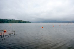 コースは、全体にフラットで、まず東郷湖を三角形に2周泳ぎ、その後