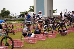 トランジッションを済ませて、バイクへ行きます。