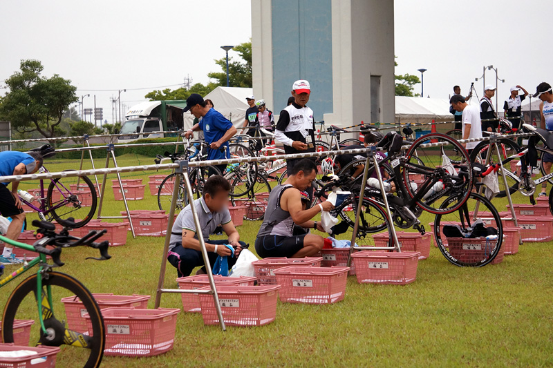 7時の選手登録、トランジッションの準備をする頃には雨も止んで