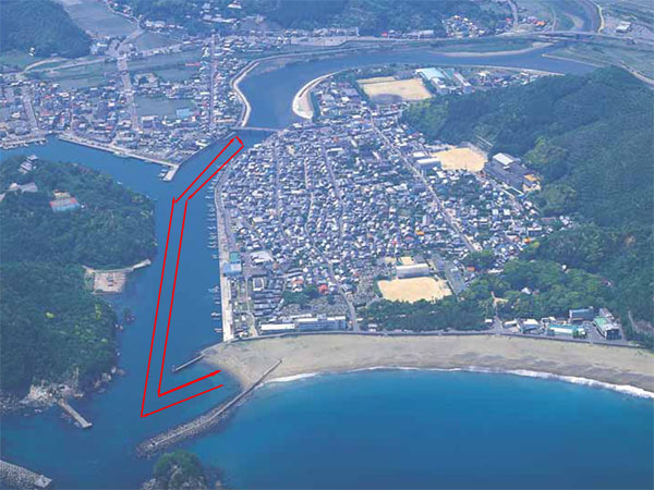 とのことで、大浜海岸から隣の小浜海岸をスタート、漁港内から、日和佐川を上っていくコースになりました。