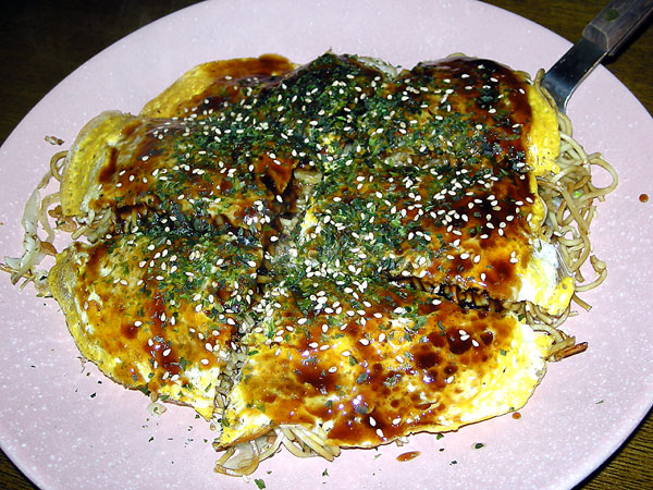この日の晩ご飯は、鉄板焼き居酒屋で、いろいろ食べて、シメにお好み焼き