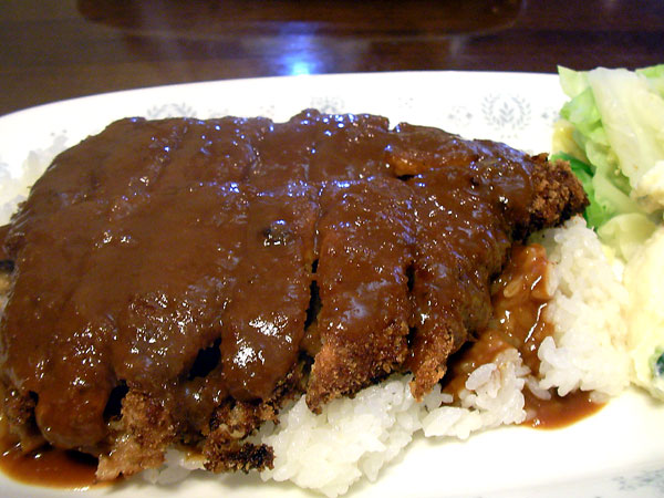 一見カツカレーのようですが、乗っているのはビーフカツ、