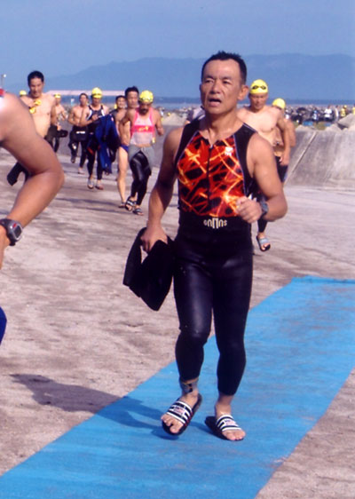 復路は、わりと泳ぎやすく、バトルやアクシデントもなく、そのまま浜へ。