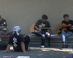 会場の外では、ファンの人たちが、ギターを抱え・・・