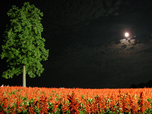 すっかり日が落ち、真っ暗で、きれいに十五夜の月が出ていました。