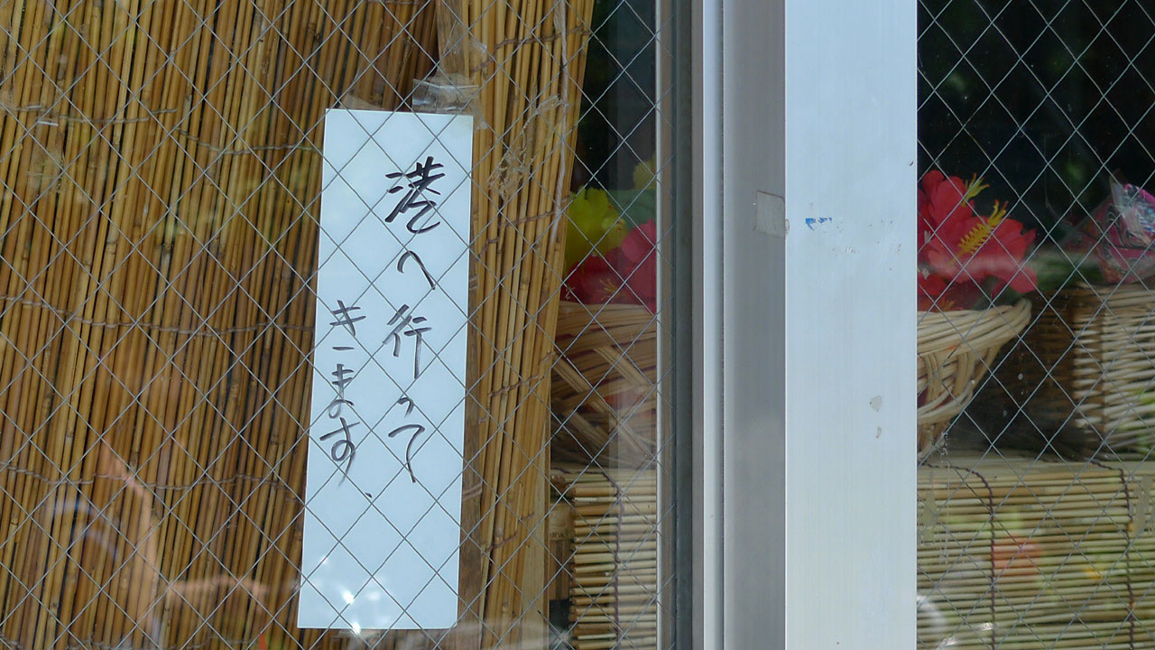 集落をしばらく行くと、ありました。「ロケ地の案内」