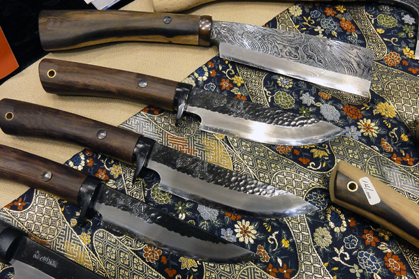 相変わらず、端正な造りの鉈、特に上の『雲龍鍛地 野鍛冶鉈』に目を奪われました。