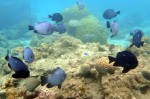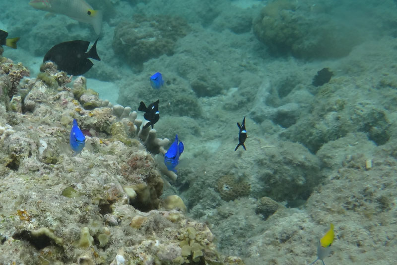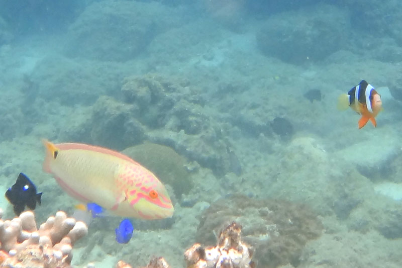 海底観光の人たちと一緒に、グラスボートに乗り、珊瑚と魚などを見ながら