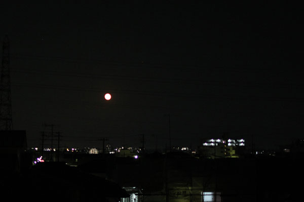 家への帰り、ふと見上げるとオレンジ色の満月が