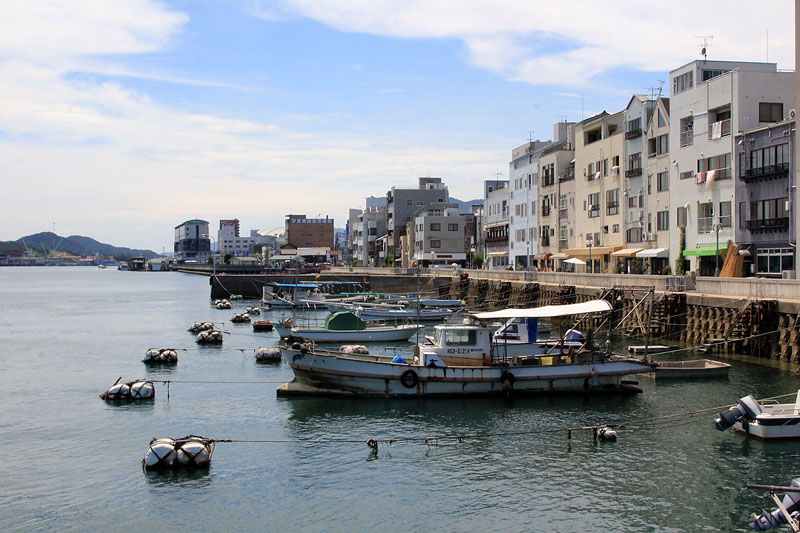 商店街から、海沿いの遊歩道へ出ると、すぐ前に向島があり、