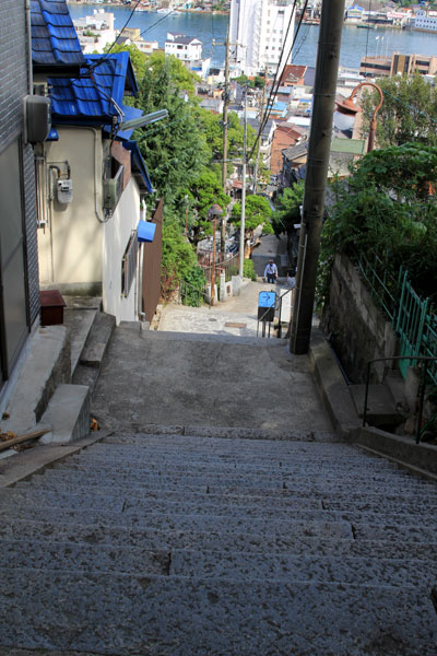 こんな感じの道をずっと下って、尾道の市街へ出ます。