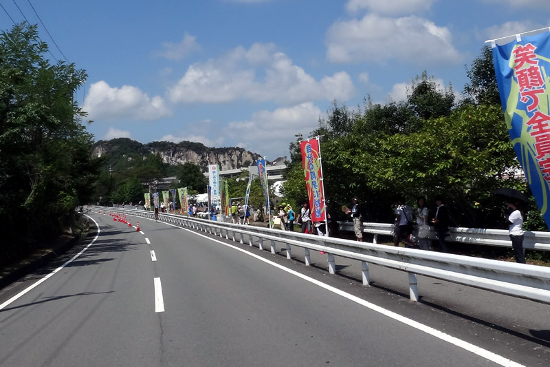 けっこうタイトな折り返しコースで、選手には安全のため、