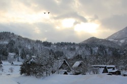 バスの駐車場から、つり橋を渡って集落へ入っていきます。