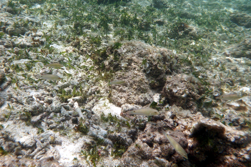 海底は砂地で、ところどころ海藻と珊瑚のかけらがあります。