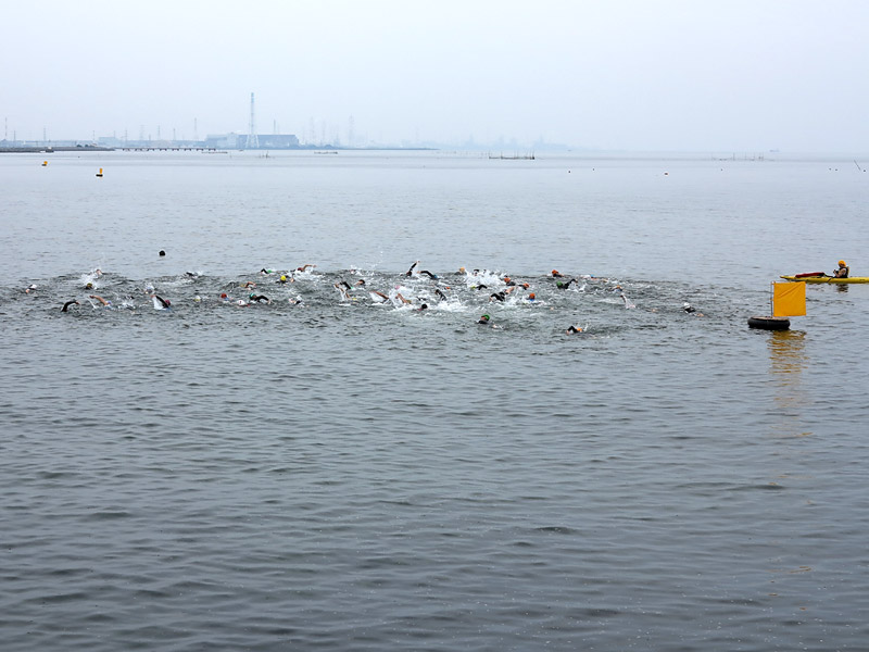 スイムは、岸から200m程沖へ行ったところからの、フローティングスタートです。