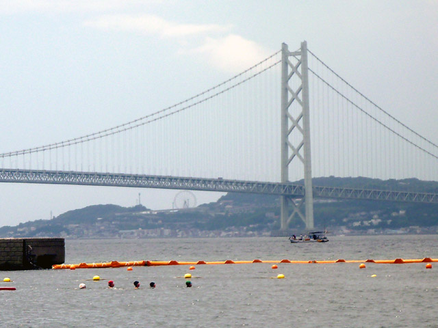 レース当日、明石海峡大橋のすぐ近くでのスイムは、壮観だと思います。