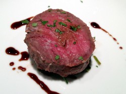 写真は、塩麹でマリネした、「プレミア近江牛ランプステーキ」