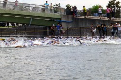 開会式の後は、チップの入ったアンクルバンドを受取り、入水チェック。