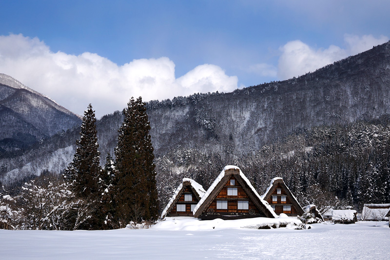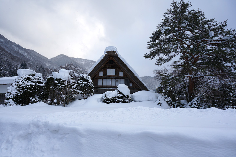 まず宿の近く、よくガイドなどに載っている3軒の合掌造りの家を目指して、