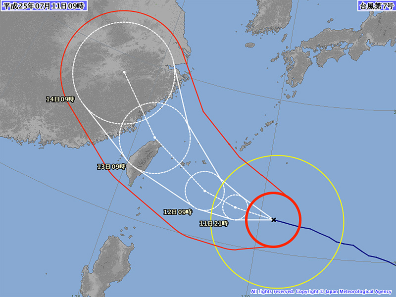 出発する13日には、台湾付近まで行ってるので、飛行機は