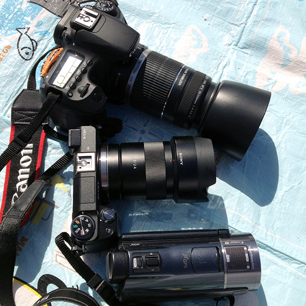 望遠レンズを付けた一眼レフは、娘夫婦に持たせて、