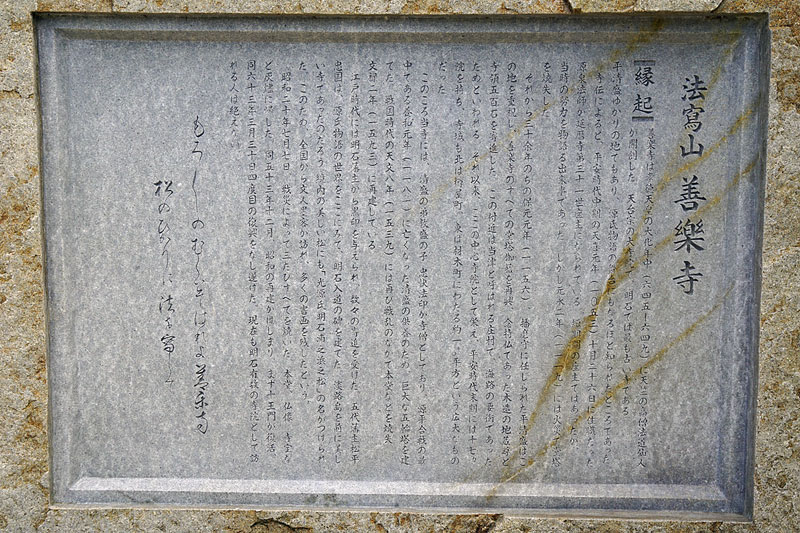 善楽寺は孝徳天皇の大化年中に天竺の僧法道仙人が開創した。
