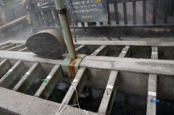 98度と言う非常に高温の温泉が湧いていて、川沿いには