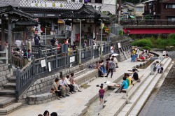 しばらく遊んで、雨がほぼ止んできたので、温泉街へ