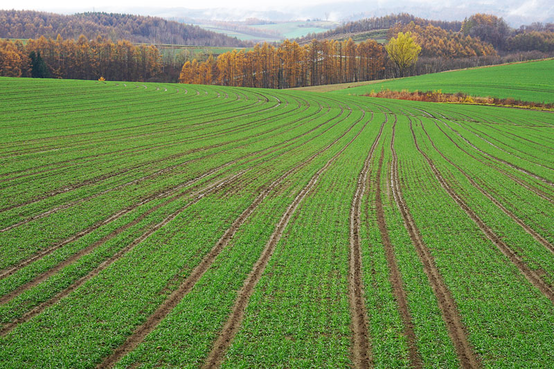 小麦の新芽と、落葉松の黄色がとても美しく、これはこれで