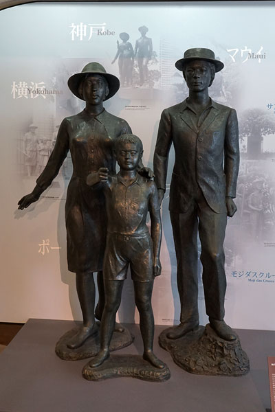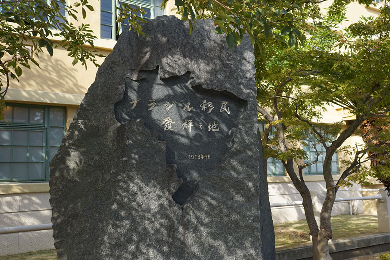 建物の前には『ブラジル移民発祥の地』の石碑が。