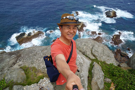 海を入れて写真を撮りたい時などは、自撮り棒は便利ですね。