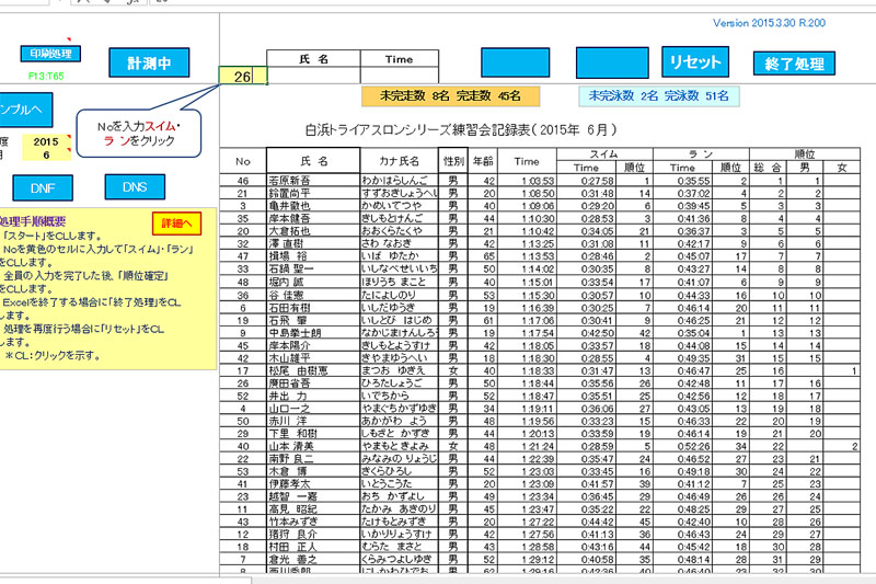 集計後、即プリントアウトして掲示、選手のみなさんにも喜んで頂けたと思います。