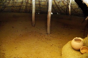 復元された住居と、後ろの集合住宅の対比がおもしろいです(笑)