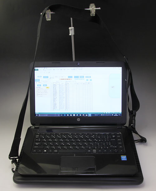 これで、パソコンが落ちないようにベルトを付ければ十分に使える感じです。