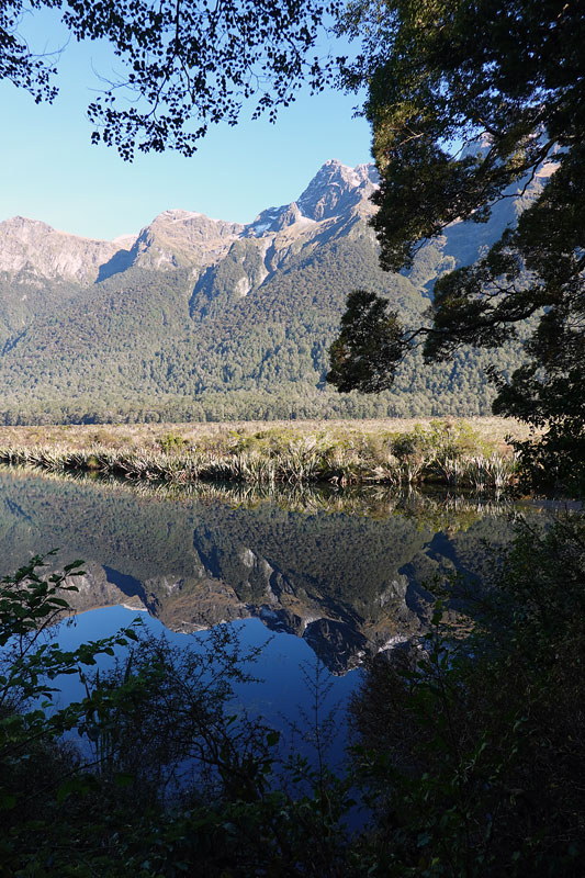 その名の通り、水面に鏡のように山々が映り込んでいます。