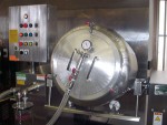 こちらは、真空タンブラー。 タンク内を真空状態にして、お肉など食材に、タレなどがまんべんなくしみ込むように、ぐるぐるかき混ぜます。 かなり重くて、ちょっと手では動かせません。。。 先々月に続いて、販売するのは2台目です。 面白いもので、どんな機械でも1台売れると、わりと続くようです。