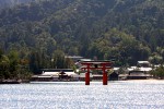 船から見た、大鳥居。 雲一つ無い快晴で、海面がキラキラしていました。