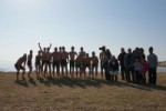 ウォーミングアップのスクワットの後、それぞれ海へ。