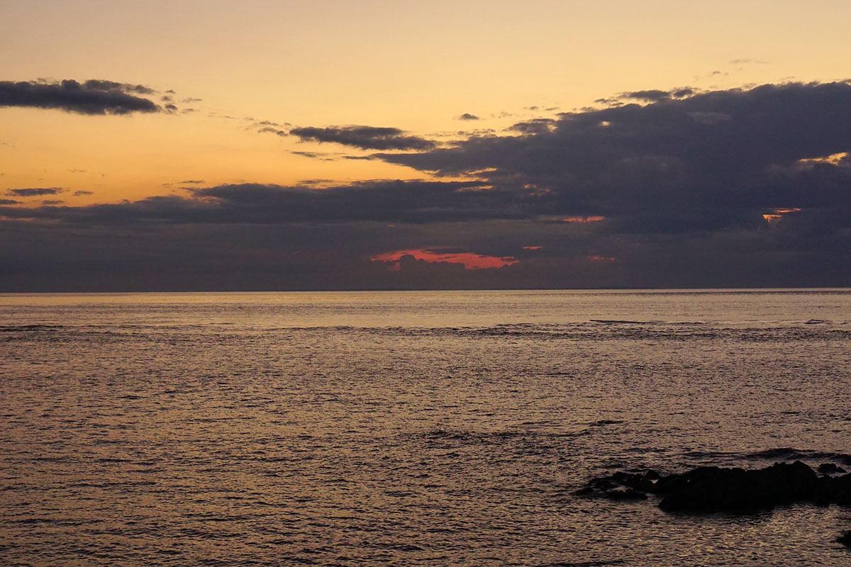 今年は、雲一つ無い好天でおかげで日の出が早く、予定の場所へ