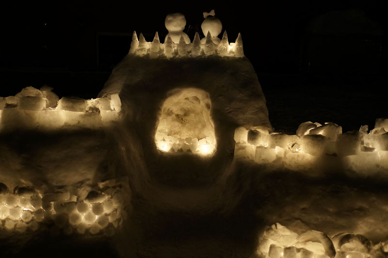 せっかくの雪灯籠も、かなり崩れてしまってます・・・